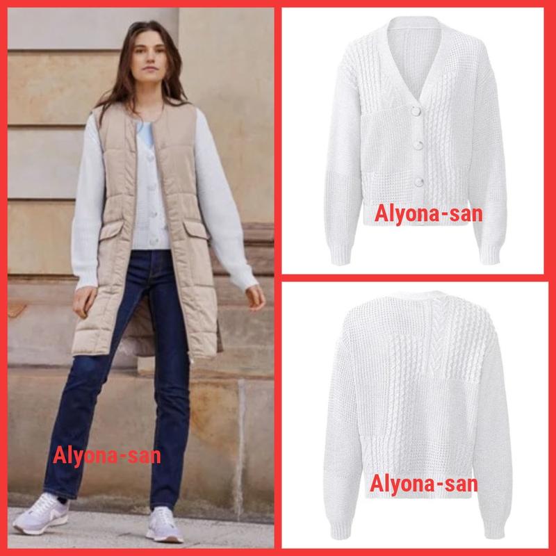 Натуральный (70% хлопок) кардиган кроя оверсайз, линия плеча спущена, застёжка на пуговицах