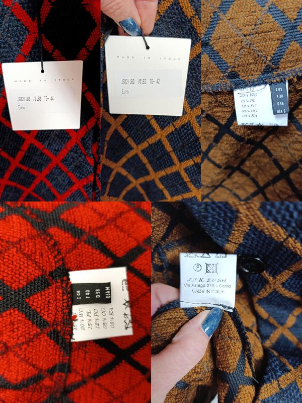 В наявності два : чорний в червоні ромби, італійський розмір 44, темно синій, майже чорний в ромби гірчичного кольору, італійський розмір 42.