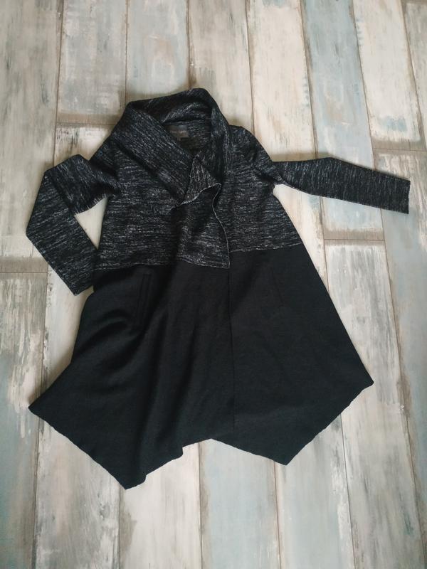Кардиган оверсайз британський бренд Phase Eight ( восьма Фаза ) з нерівним подолом. Размер38(м) оверсайз. Вільний від грудей(з великим запахом), в бічних швах кишені,підійде на 40(л)Стан новий. Дуже комфортний та якісний та теплий. Тканина щільна, приємна(фото).Воріт подвійний, застібка кнопки на плечовому шві, два прорізних кишені. Заміри. Плечи39-40 см, під руками48-49 см, довжина рукава 66см, довжина по спинці 90/98см.