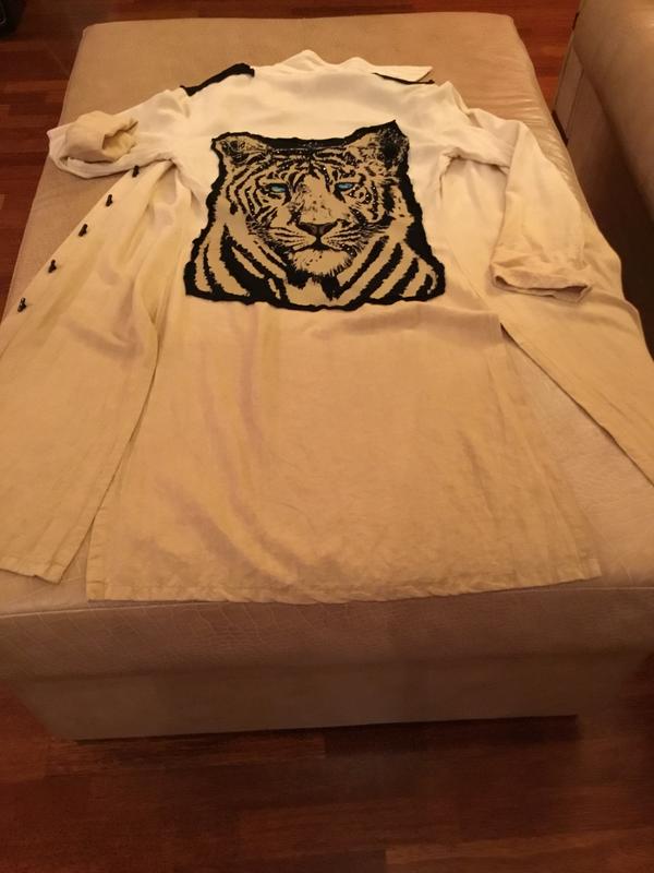 Кардиган з аплікацією на спині. 100% бавовна. Фурнітура камені Сваровські. Рукава можна підкачувати на 3/4. Довжина 95. ПОГ 42. ПОБІДИ 45. Дл. Рукава 56. Дуже стильний кардиган. Стан нової речі.