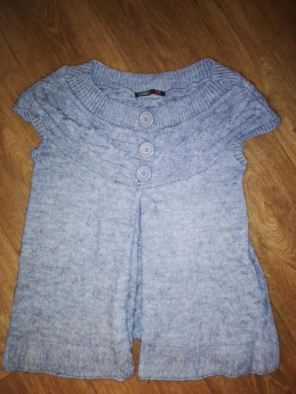 Відмінна кофта накидка Незвичайна і цікава модель Можна носити як на водолазку так і на майку + можна під пояс і без. Політ фантазії вітається 😀 Колір рааномерный сірий!!!! Камера на фото засвічує ((((( Колір красивий сірий Спереду три гудзички, растегиваются Низ вільного крою. Не коротка Гарний візерунок в'язка вгорі На бірці розмір 10(38)