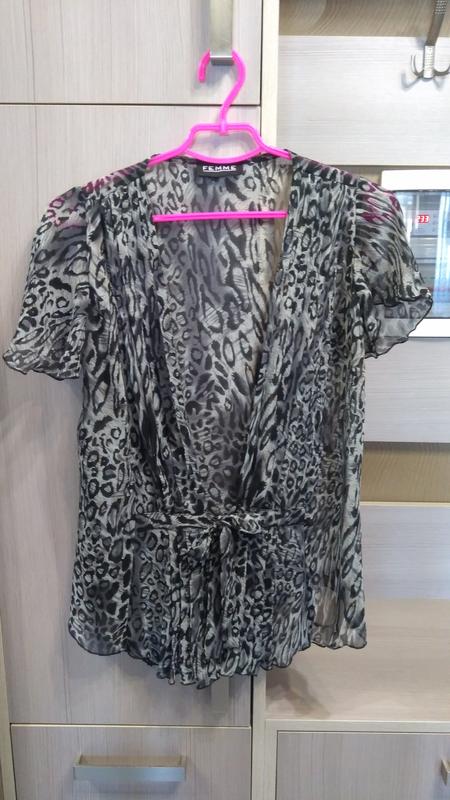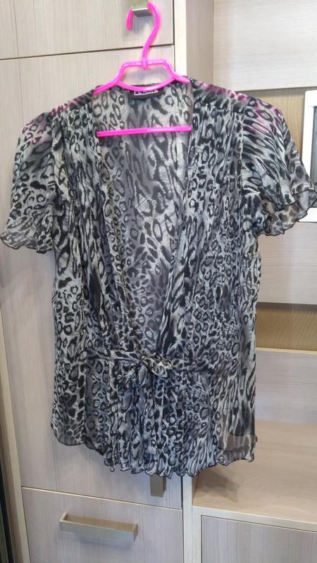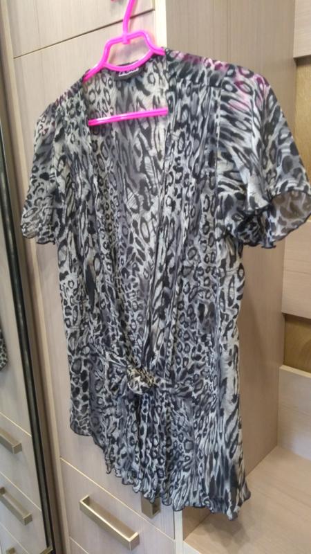 Накидка з зав'язками принт леопард. Розмір-12(М). Довжина-62 див. ПОГ-47см. Рукав-18 див.