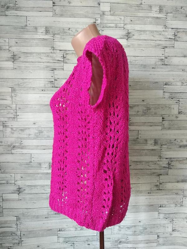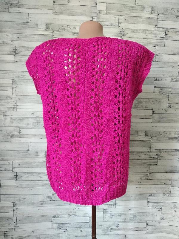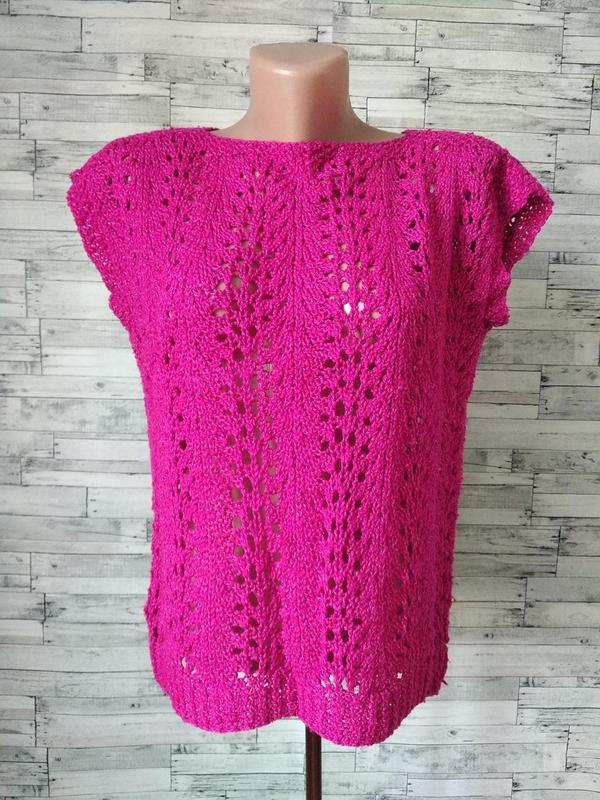В'язана кофта з коротким рукавом в ідеальному стані Розмір 46-48 (M-L) Заміри: довжина 53 см плечі 52 см НОГ 48 см ПОТ 45 с колір рожевий состав акрил