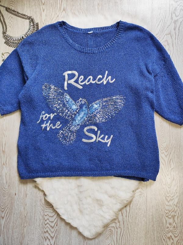 Синій блискучий короткий светр кофта в'язана джемпер зі срібним принтом малюнком паєтками від Asos