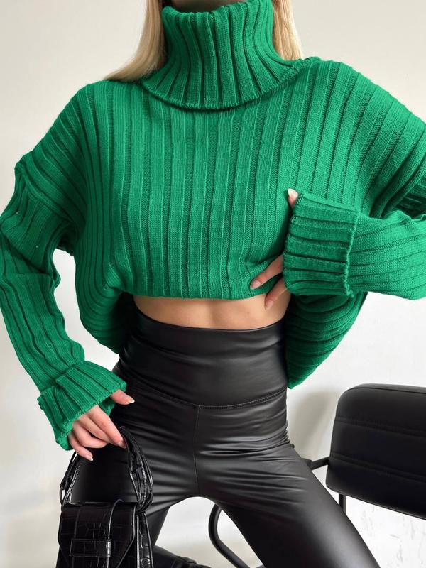 Вкорочені светри з горлом 🤎• матеріал: 70% акрил, 30% вовна• розмір єдиний 42/46• кольори: зелений• довжина: 41 см