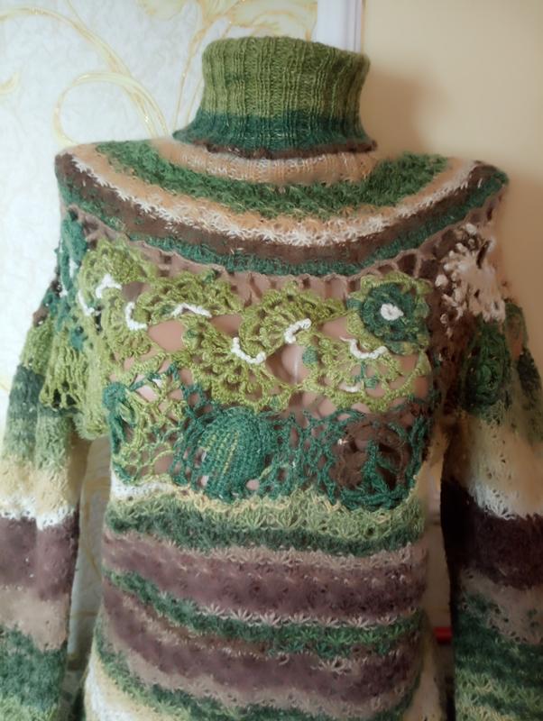 Жіночий в'язаний светр ручної роботи "мега-листя"