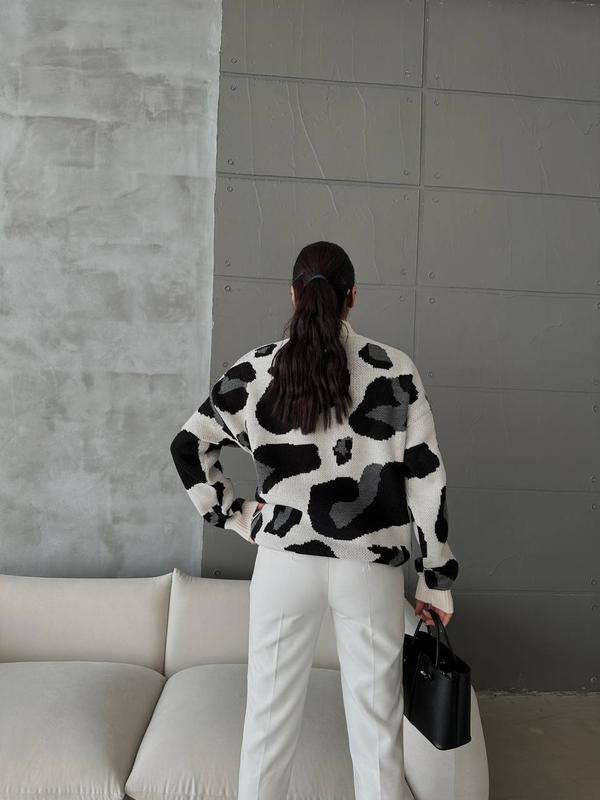 Подовжений светр оверсайз з комірцем в принті «Лео»Мʼякий светрик приємний до тіла😍Манжети вʼязка резинка