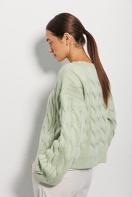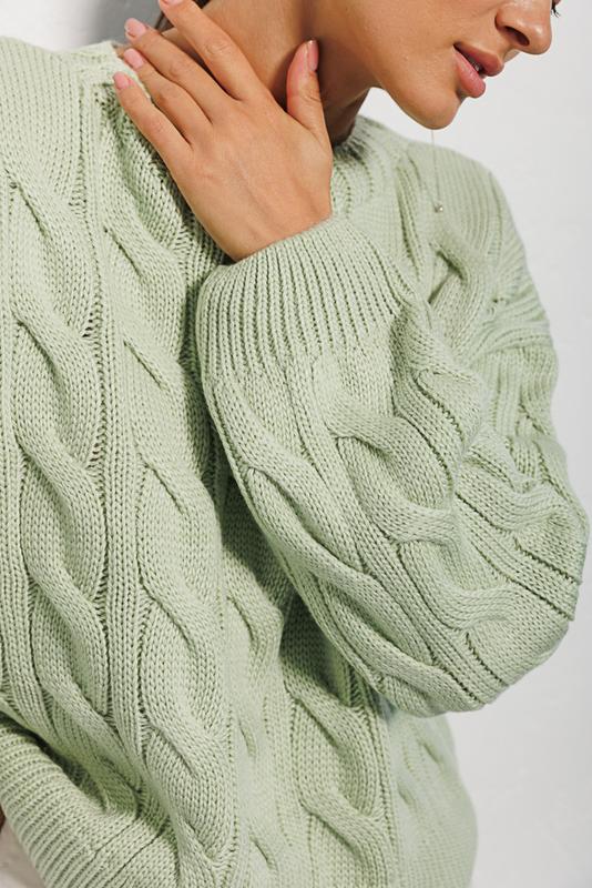 Жіночий светр із грубого в'язання в косичку, колір: м'ятний