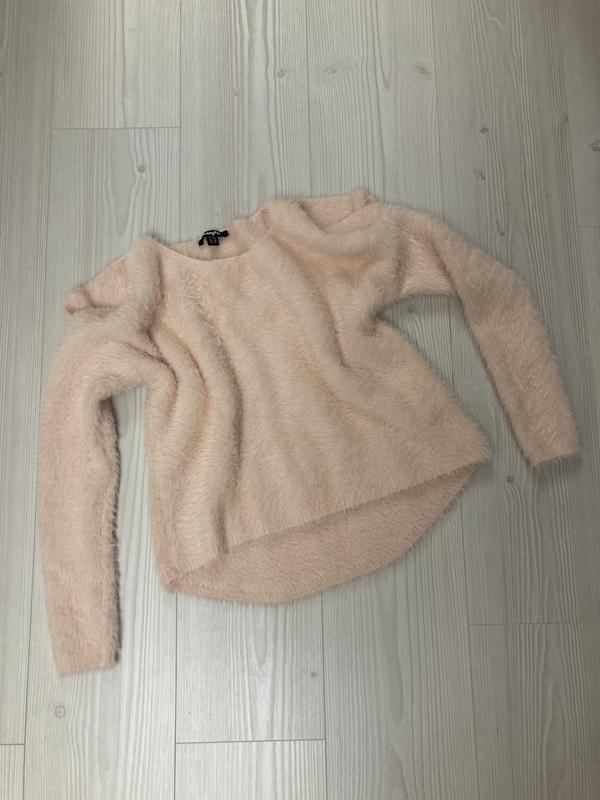 Актуальний светрик травка пудрового кольору з розрізами на плечах. Дуже м’який. Асиметричний, сзаду трохи довший ніж спереду. Іде оверсайз, тому можна на більший розмір ніж вказано по бірці.