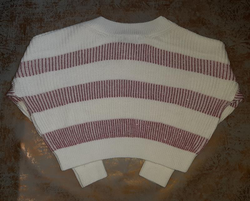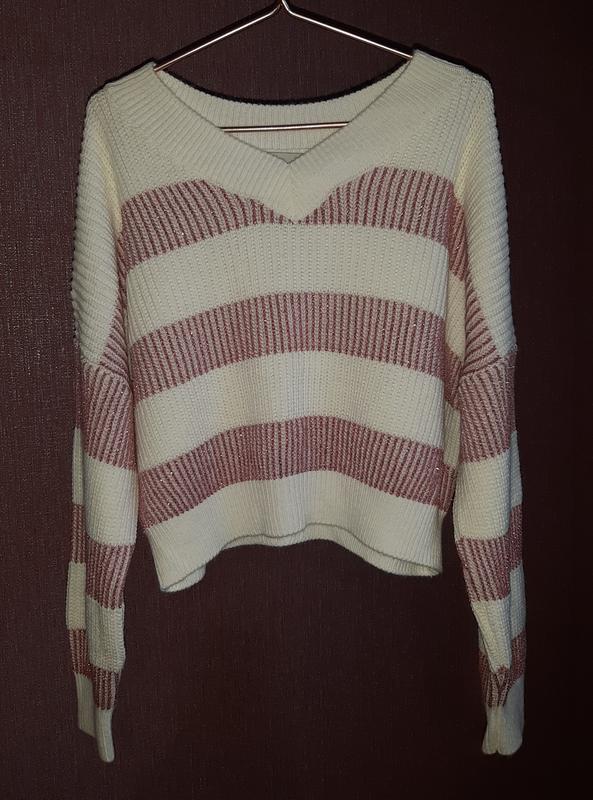 Стильний яскравий пуловер відомого італійського бренду Joleen. У кольорову смужку додана нитка люрексу, що робить цей светр дуже нарядним. Розмір універсальний.