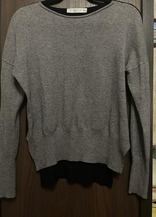 М'якенький та дуже незвичайний светрик, розмір на бірці XS, але більше підходить на розмір S. З двух сторін є вирізи. Позаду низ виробу довший. По грудях вільно, до низу звужується. У внутрішній, нижній чорній частині светра є невеличке кошлатання. Довжина 62 см. Довжина рукава від горловини 72 см.ПОГ 54 см.