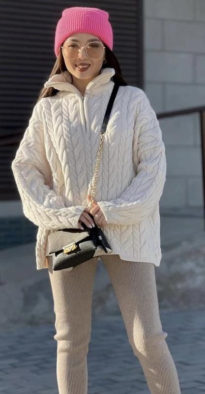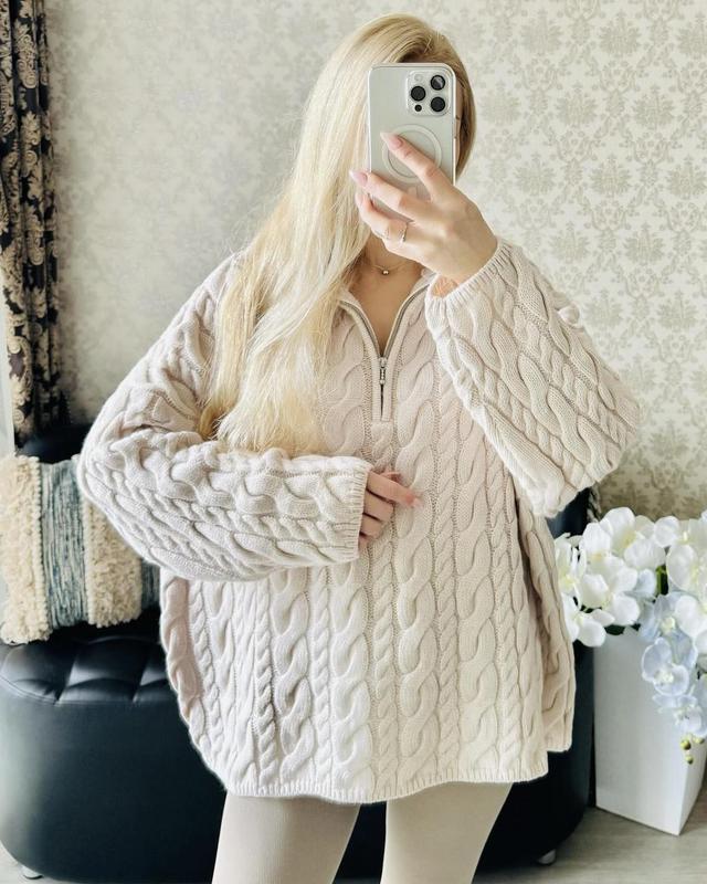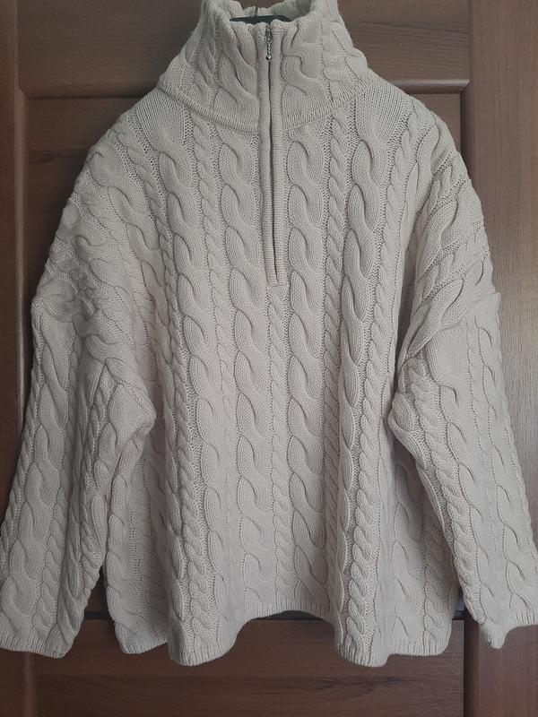 Свитер новый, но без этикетки. Стильный.Приятный к телу.Присутствует 50% шерсти. Оверсайс. Длина-62см,ширина между проймами-68см,длина рукава от низа горловины-72смЦвет-молочный