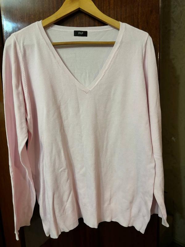 Свитер реглан большого размера 56-58 цвет молочно розовый состояние отличное одет пару раз фирма F&F качество коттон с полиамидом длинна 72 см полуобхват 60 см длинна рукава 66 см плечо 7 см