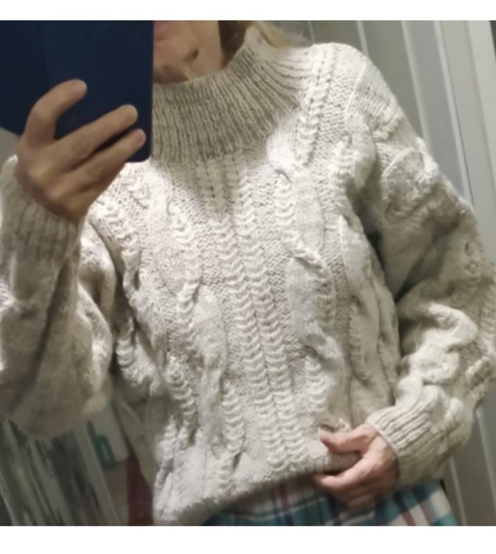 светр жіночій оверсайз, дуже теплий, вовна, сама зв'язала, новий, вузликів немає, одне з любимих занять.розмір М , L. ручне прання, ополоскувати і віджимати можна в машині пральний, заміри:плече 24, рукав 45,пройма 26,ширина під руками 57,ширина внизу 51,довжина 52.фото зроблено на мені, мій розмір S. як на мене то великуватий.