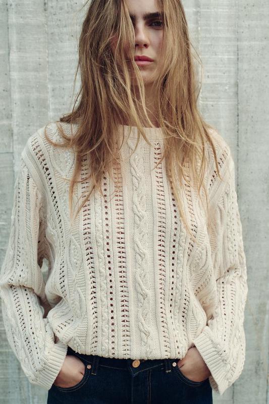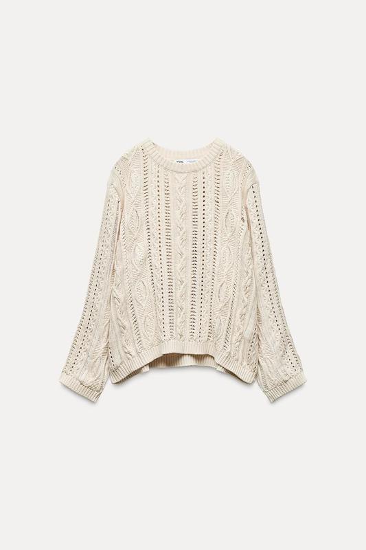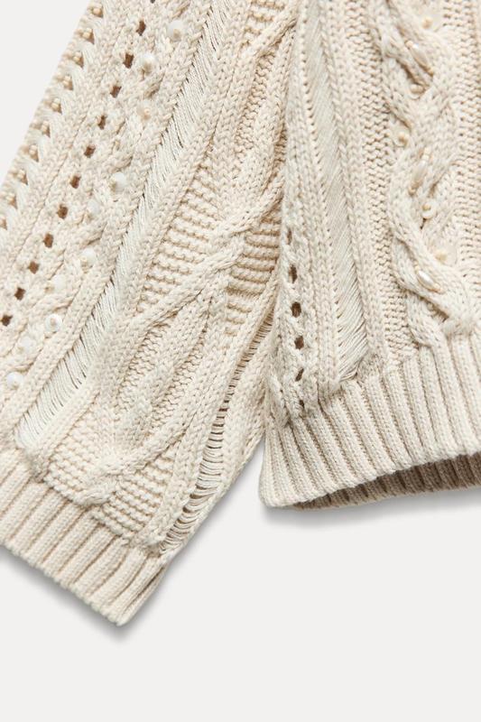 Трикотажний светр із вирізами, бісером і блискітками. Круглий комір і довгі рукави.