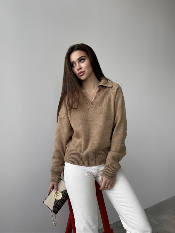 Відчуйте поєднання зручності та стилю з нашим поло-светром із вовни! Зроблений з високоякісної пряжі, він не лише зігріє вас у прохолодну погоду, але й підкреслить витонченість вашого образу. Чудовий варіант для тих, хто шукає гармонію комфорту та елегантності в кожному елементі одягу.