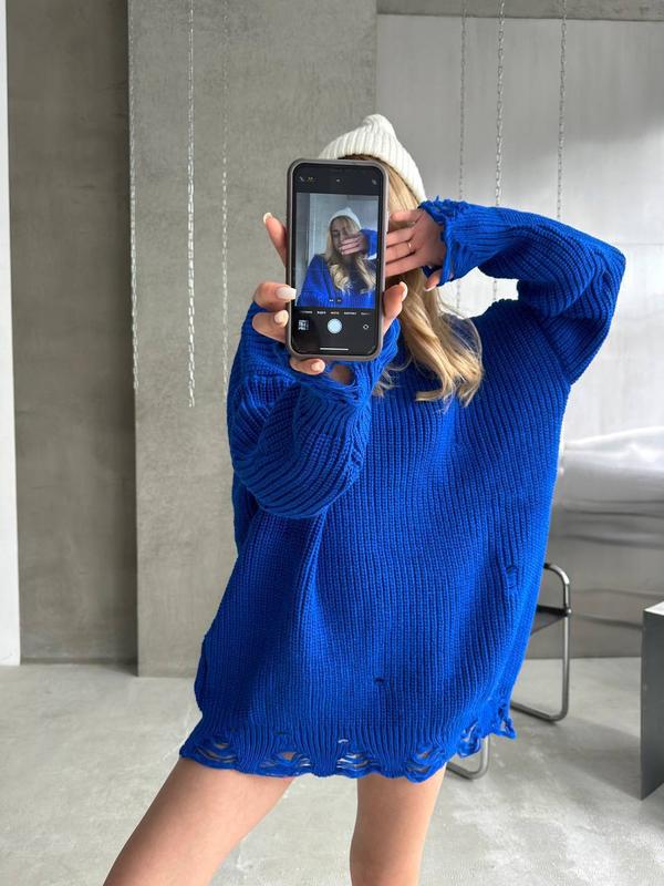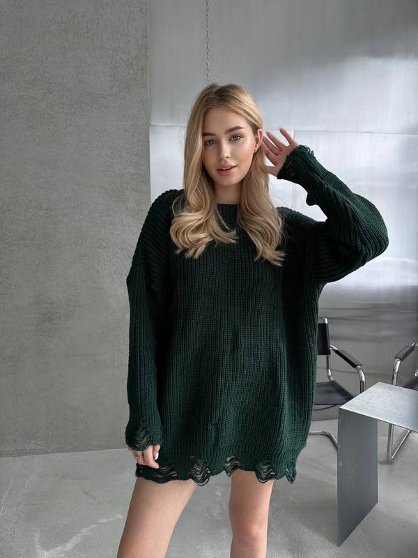 Модель вирізняється широким рукавом із заниженою лінією плеча і манжетами, на яких також присутні розриви.