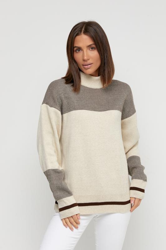 Об'ємний светр у вільному оверсайз розмірі з оригінальними елементами в'язки. М'який до тіла, добре тягнеться. Підходить на кожен день, так як досить теплий, зручний і комфортний.