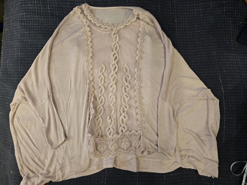 Італійський трикотажний комплект: майка та кофта стилю оверсайз. Кофта оздоблена вставкою спереді мереживом. Колір пудровий. Розмір L.
