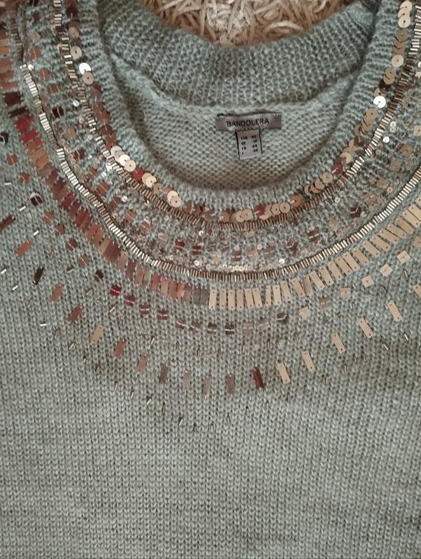 Светр новий, подовжений,елового кольору, реглан 74 см від горловини, НО під руками 54 см, НО внизу 58 см, довжина светра 80 см.