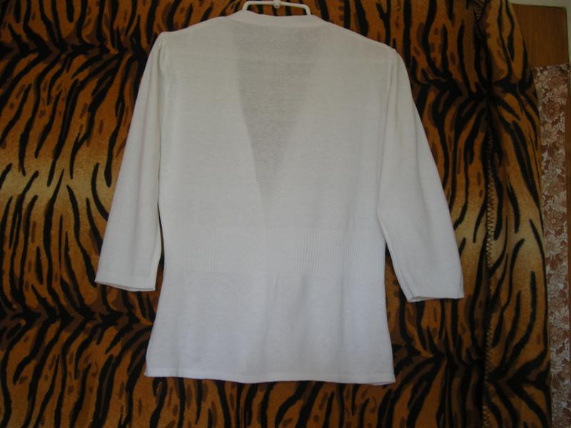 Шикарна кофта білого кольору,легка,тонка,фірмова"Atmosphere",натуральна-100%коттон,кофта приталені,на талії широкий манжет в складках,застібається на три ґудзики,об'єм грудей-96см.,рукав довжиною 45см.присобран зверху,закінчується манжетом-гумкою,довжина-62cm.
