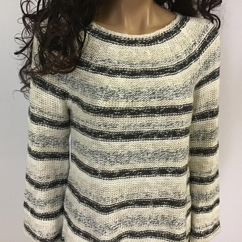 Нова з бірками тепла та оригінальна жіноча кофта від американського виробника. Вільного крою , розширена до низу . Декорована люрексовою ниткою. Особливої уваги заслуговує кольорова палітра - це дуже гармонійне поєднання чорного, бежевого ,сірого кольорів. Вільного крою , рукав реглан. 100% акрил. Розмір L.