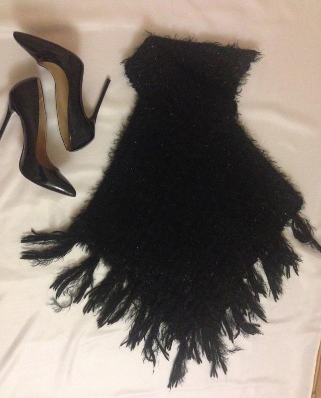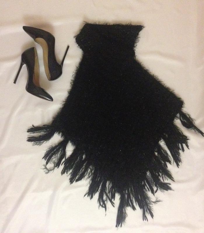 Пончо з горлом, светр - травичка з блискучою ниткою і пензликами