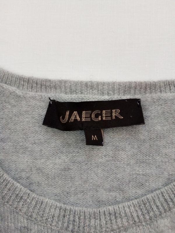 Базовий сірий вовняний кашеміровий светр JAEGER London. Светр теплий, м'який, приємний для тіла, красивого перлинно-сірого кольору. Виміри :по грудях-48, довжина - 60, довжина рукава від плеча - 60, манжет по низу - 38