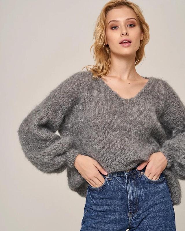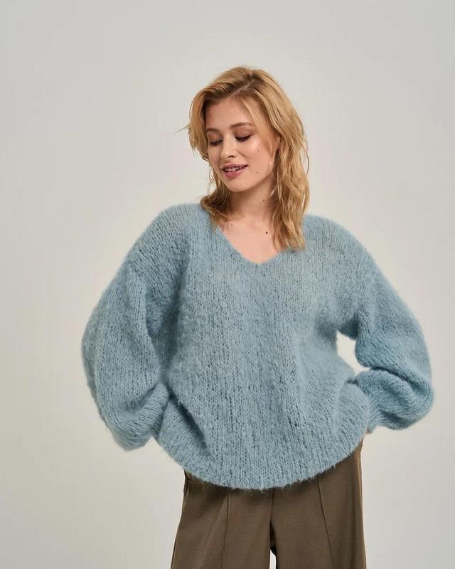 Оверсайз светр з V-подібним вирізом.Альпака/ шерсть.Теплий і досить щільної в'язки.Також доступний до замовлення в кольорах :лимонний, рожева пудра, м'ята, чорний, теракот і сірий.Для замовлення - пишіть нам.
