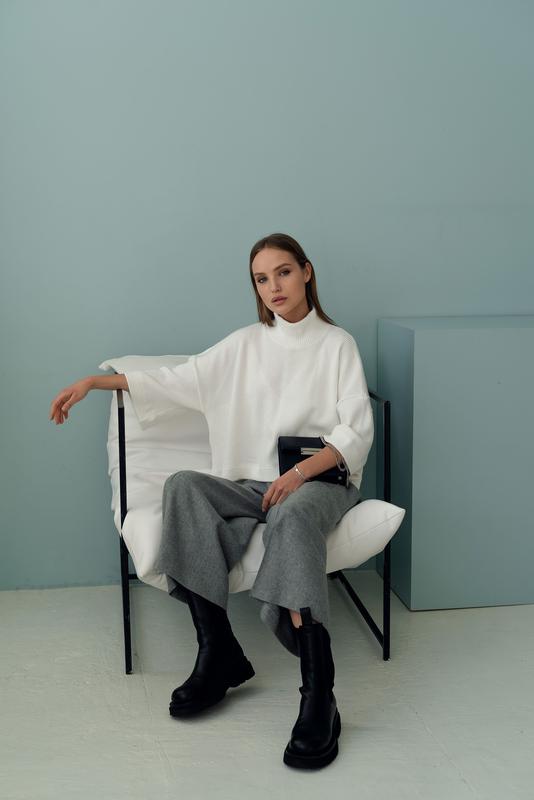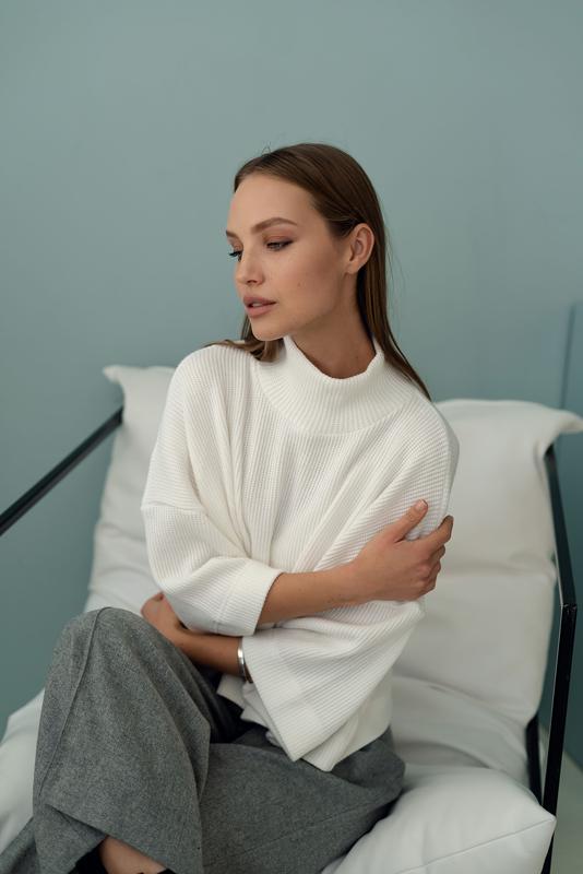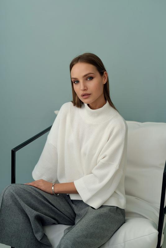 Красивий светр на кожен день. Кольори: чорний, білий, пильно-бежевий. Склад: 60% вовни, 20% акрил, 10% віскоза, 10% еластан. Тканина дуже приємна до тіла, не скочується. Обмін та повернення! Власне виробництво. Для замовлення чи уточнення інформації пишіть в особисті повідомлення :)
