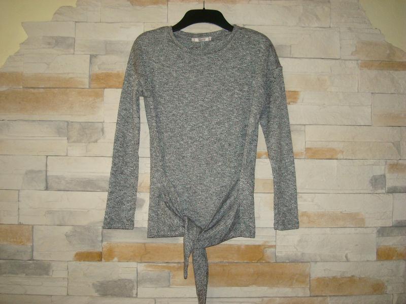 Стильний жіночий світшот від популярного іспанського бренда Pull&Bear. Завжди актуальний сірий меланж! Оригінальний крій із вузлом. Довжина до середини стегна. М'який і приємний трикотаж! Чудова якість! Склад: 60% поліестер, 40% віскоза. Розмір: S.