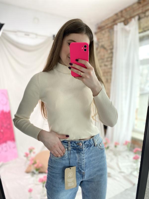 Трикотажний гольф під горло водолазка чорний білий бежевий по фігурі в рубчик базовий трендовий стильний
