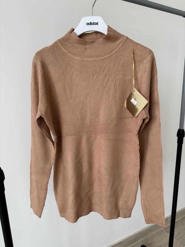 Жіноча водолазка гольф рубчик стійка темний беж