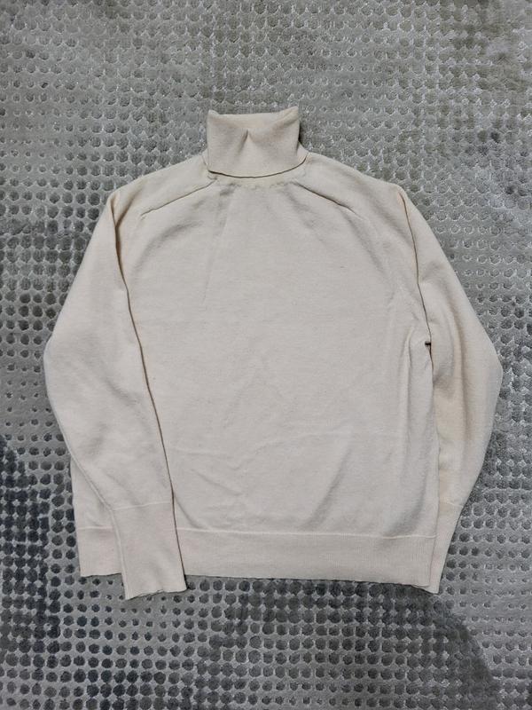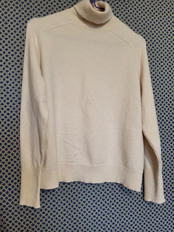 Базовий светр із вмістом вовни бренду Primark. Колір пряженого молока, ближче до тілесного, теплий відтінок. Тканина м'яка, щільна, еластична, тепла. Комбінований склад сприяє довговічності виробу.