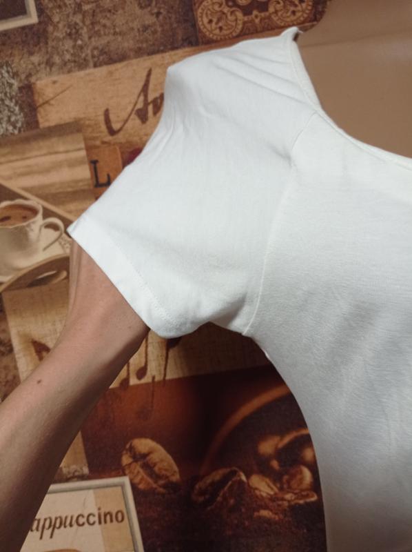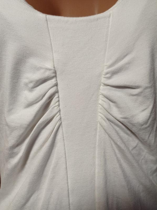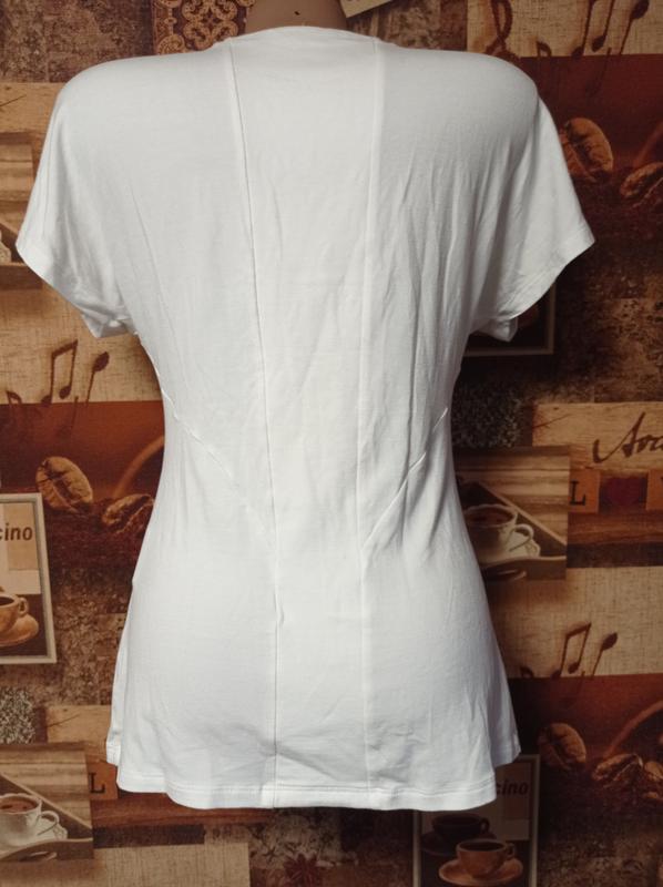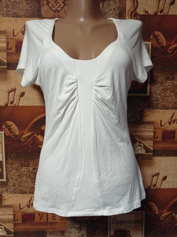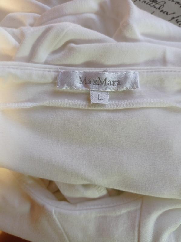 Брендова білосніжна віскозова футболка/блкза MaxMara,p.L .Виготовлена для Японії.Стан новий, етикетки немає.Тканина тянеться,склад:95%віскоза,5%еластан.Заміри:пог-44-56см,пот-38-50см,низ-47-60см,довжина-59см.