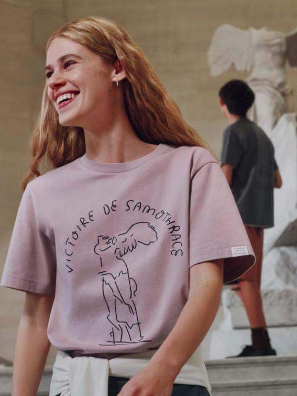 The Louvre & Yu Nagaba Шедевры Лувра. Иллюстрации художника Ю. Нагабы, нарисованные свободными линиями, неотразимы...! Особенно рекомендуется любителям искусства. Величественный дизайн «Крылатая Победа Самофракии». Нарисовав величественную «Крылатую Победу Самофракии» простыми штриховыми рисунками прикосновением г-на Нагабы, вы заново узнаете красоту этой скульптуры. Естественный цвет, который хорошо сочетается с кожей, прекрасно дополняет произведение искусства. С 1884г скульптура находится на видном месте в Лувре и является одной из самых знаменитых скульптур в мире. Заміри м Плечі 45 рукав від плеча 21 Напівоп‘єм грудей 53 Довжина 68