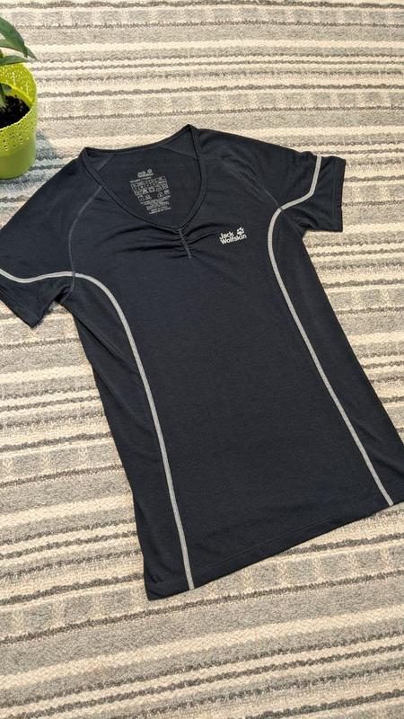 Jack wolfskin оригінальна спортивна жіноча футболка у відмінному стані. Підійде на S-M. Орієнтуйтесь на заміри. Є питання- пишіть .