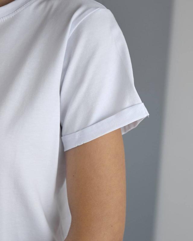 Має прошиті підвороти на рукавах, прямий укорочений крій ☺️
