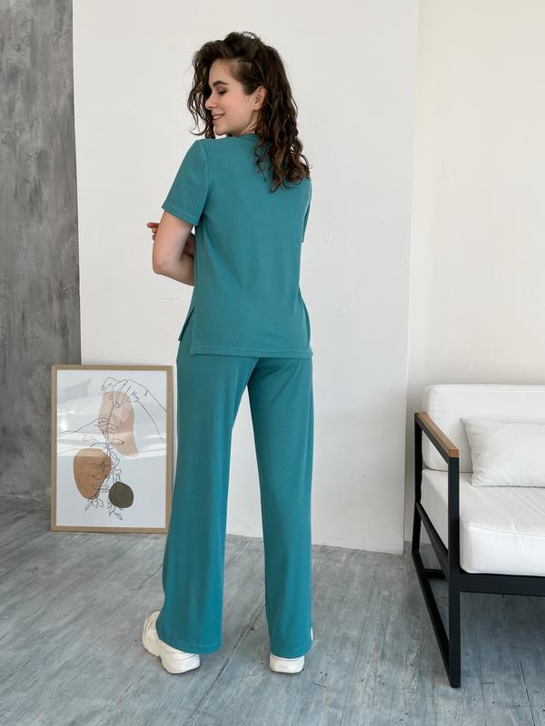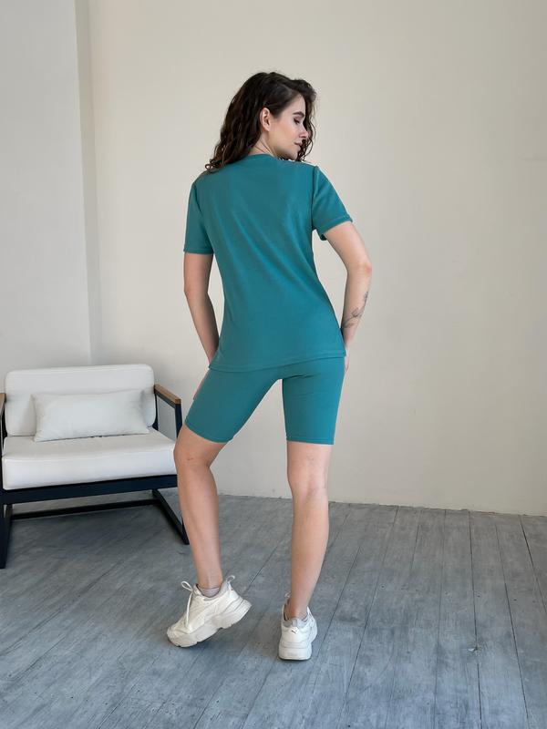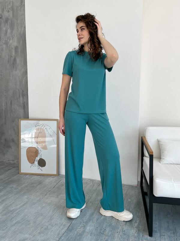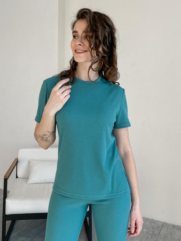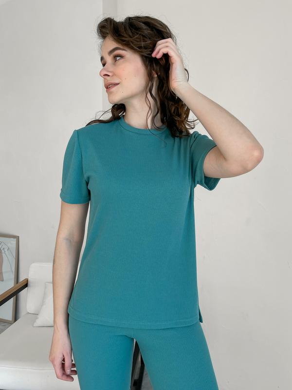 Базова футболка в рубчик з бічними розрізами,не обтягує,ровний крой.
