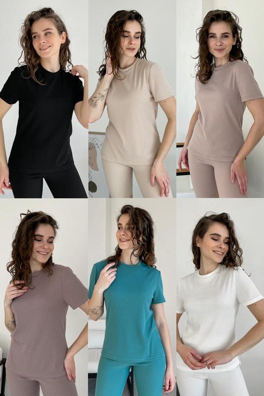 Параметри футболки в рубчик у розкладеному вигляді: 🔖40-44 (XS-M): обхват грудей – 44 см, довжина спереду – 60 см, довжина ззаду - 62 см, довжина рукава -; 19 см, ширина рукава – 33 см. 🔖46-50 (L-2XL): обхват грудей – 48 см, довжина спереду – 65 см, довжина ззаду - 67 см, довжина рукава – 23 см, ширина рукава – 34 см. 🔖52-56 (3XL-5XL): обхват грудей – 53 см, довжина спереду – 65 см, довжина ззаду - 69 см, довжина рукава -; 27 см, ширина рукава – 40 см.