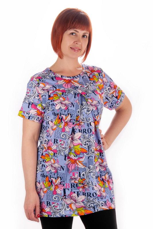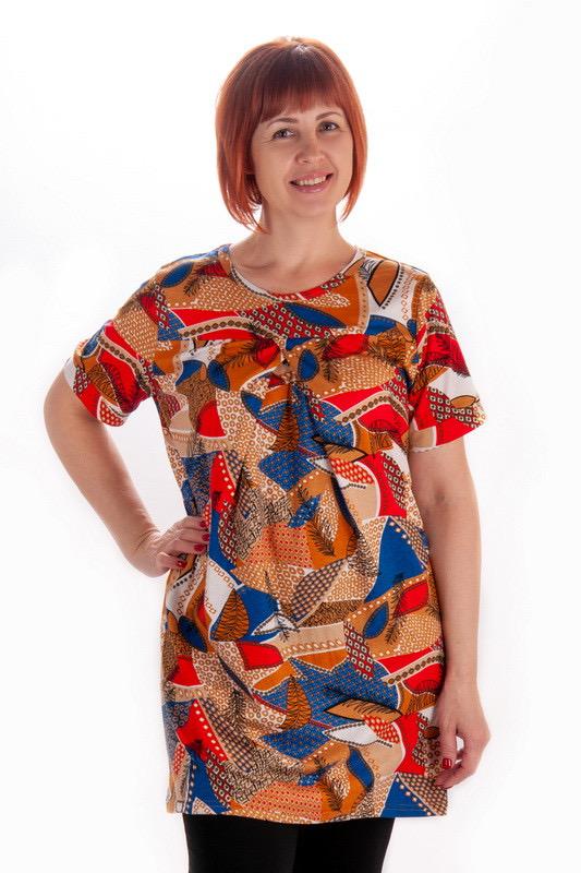 Базова літня туніка жіноча з легкого натурального принтованого куліра-реактиву. Модель прямого силуету, з короткими зручними рукавами, довжиною до коліна, виконана як у яскравих, так і стриманих кольорах. Полотно натуральне, відмінно підходить для спекотного літа. Може давати усадку після прання.