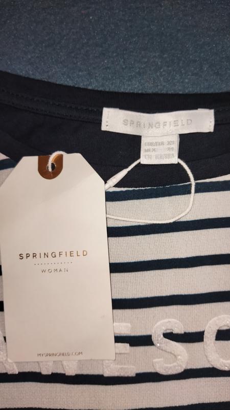 Футболка Springfield. Розмір ХС, заміри на фото. Перед зроблений ніби зі стрейчшифона, спинка - трикотаж