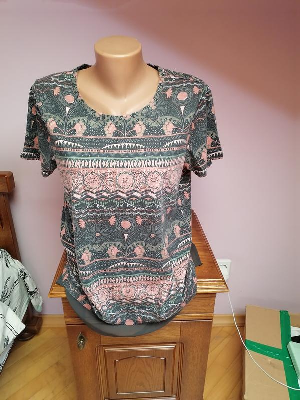 Стильна брендова футболка, р L-XL, з квітковим принтом, в ідеальному стані, півобхват грудей 53 см, довжина футболки 72 см.