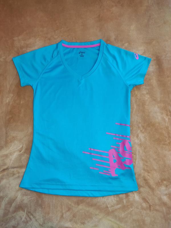 Жіноча футболка з короткими рукавами, круглим вирізом, приталеного крою. Використовується м'який і легкий матеріал поліестер, завдяки якому футболка відводить зайву вологу. Плоскі краї зменшують потертості і подразнення. Розмір S. Стан нової речі
