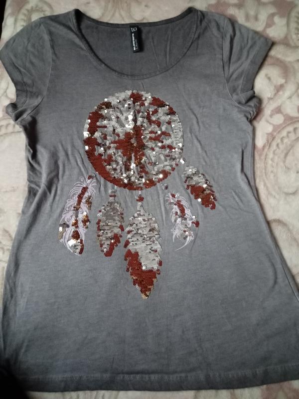 Жіночий одяг/ брендова футболка з принтом 🩶46/48 розмір, котон