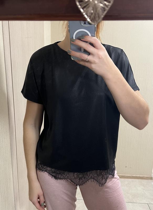 Кофта вільного крою в розмірі S від бренду Mohito.Низ прикрашений мереживом Має цікаве покриття-принт (видно на останньому фото)В носці майже не була Параметри:Довжина (до мережива) — 56 смШирина по грудях — 55 см