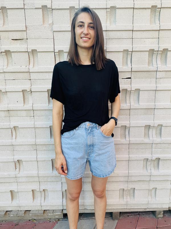 Футболка чорного кольру, трохи просвічується, виріз на спині, приємна до тіла. Річ нова, з біркою. Зріст моделі 170. Тканина: модал