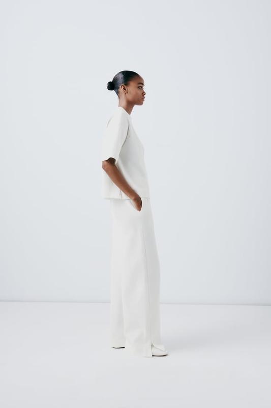 Футболка с круглым воротником, подплечниками, опущенными проймами и короткими рукавами. Мягкая эластичная ткань с непрозрачным компактным переплетением.
