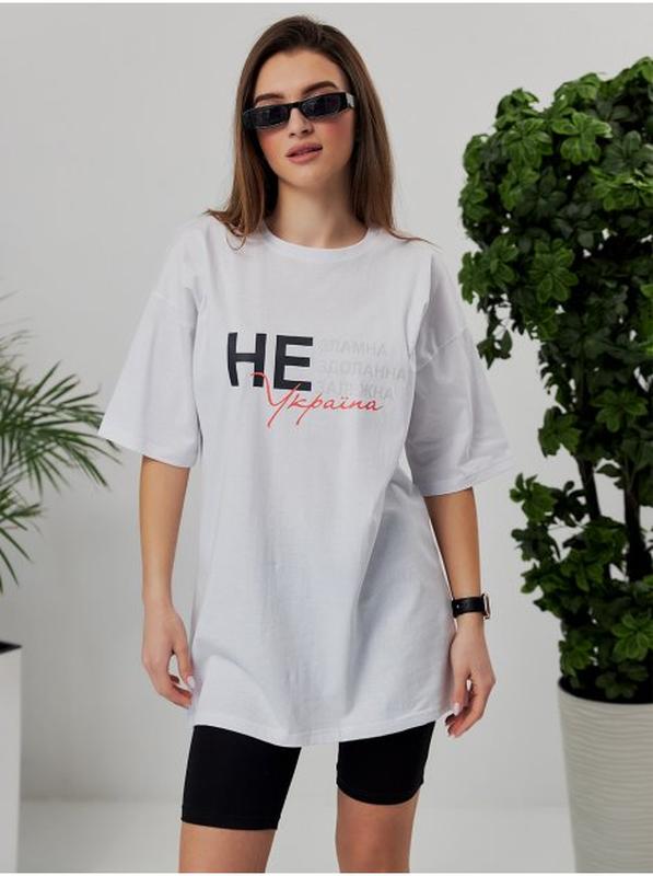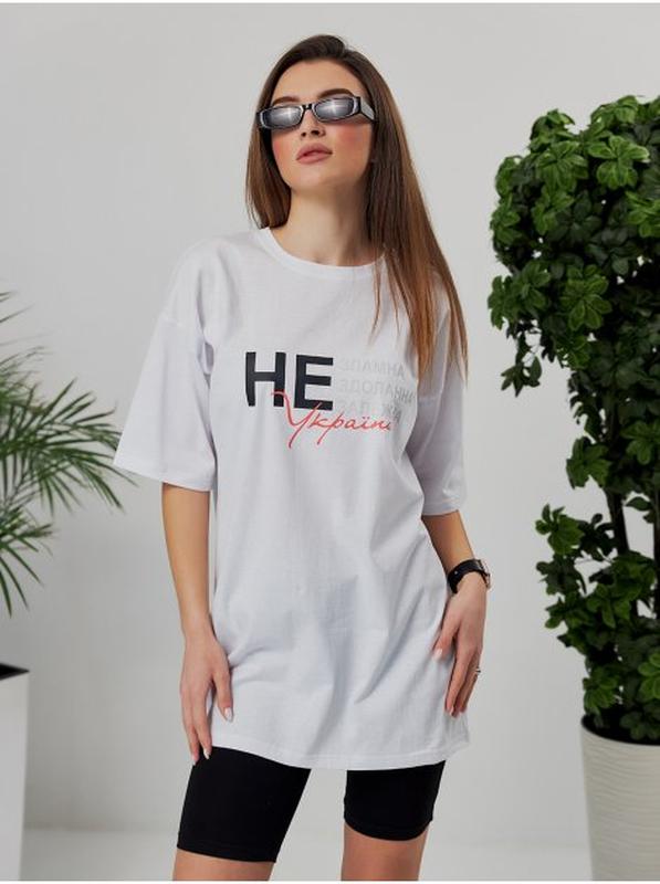 Подовжена футболка, патріотичнаМатеріалисупрем (100% бавовна)Довжина рукаваS - 21 см, M - 21 см, L - 21 смДовжина виробуS - 76 см, M - 77 см, L - 78 смШирина під проймамиS - 53 см, M - 55 см, L - 57 см