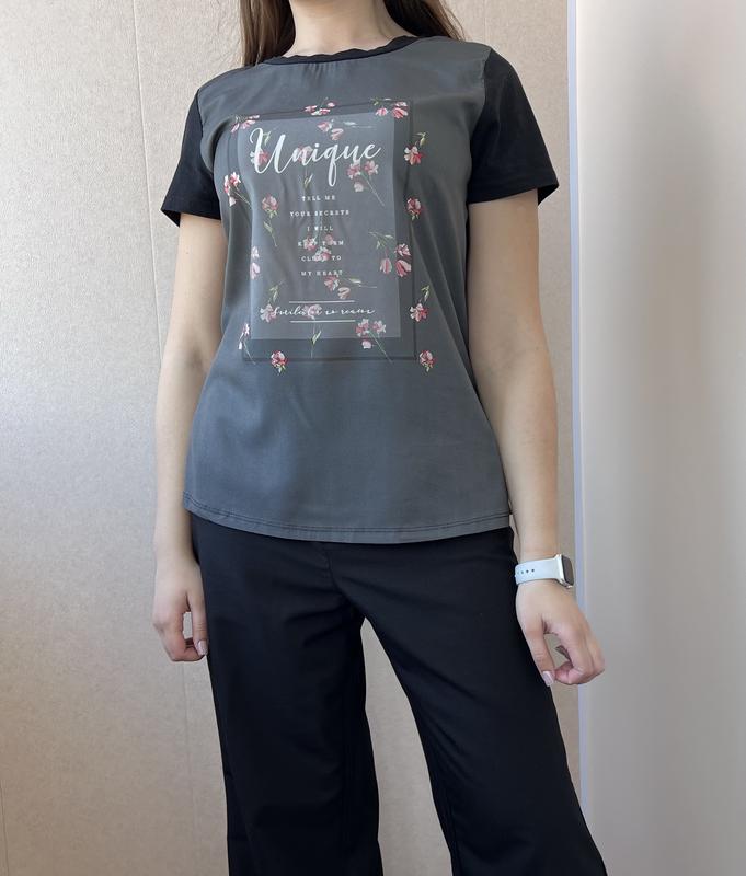 📌Футболка 📎Розмір: М (на етикетці)🌷Заміри одягу: довжина рукава 17 см, ширина плечей 36 см, обхват грудей - 91 см, талія - 87 см, довжина переду 62,5 см , довжина позаду - 67 см🔥Ціна 110 грнЗаходь на сторінку, там є ще багато товарів